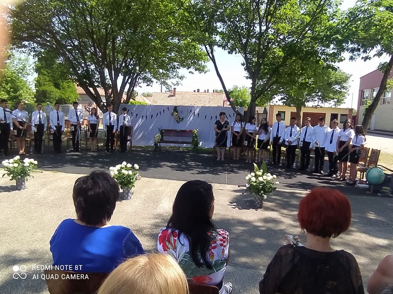 Ekkor még bizonytalan volt, hogy a 8. évfolyam milyen módon tud búcsút venni az iskolától. Örömünk duplán volt öröm, hiszen 2021. június 19-én nemcsak a nyolcadik évfolyamot ünnepelhettük közösen, de hosszú időszak után a szülőkkel, családtagokkal és gyerekekkel együtt ülhettünk intézményünk feldíszített udvarán.